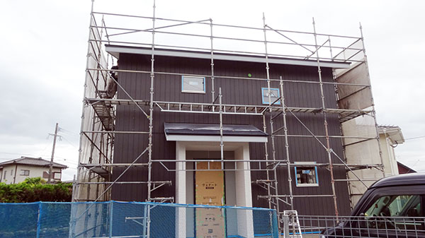 宗像市ひかりヶ丘M様邸の外装塗装の様子です♪ 外壁材も貼られていました!! 全体的に黒で落ち着いた感じに仕上がっています♪ この日は、軒...