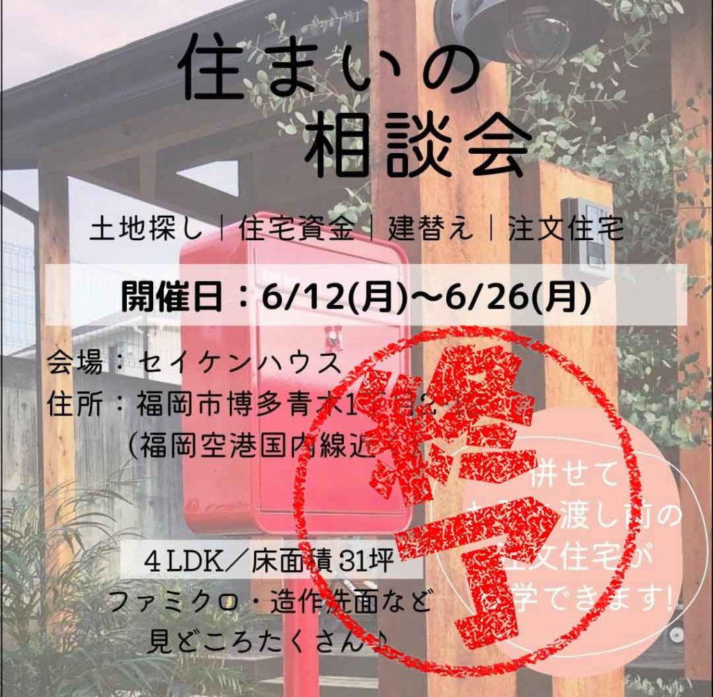 【お知らせ】住まいの相談会♪ 6/12(月)~6/26(月)