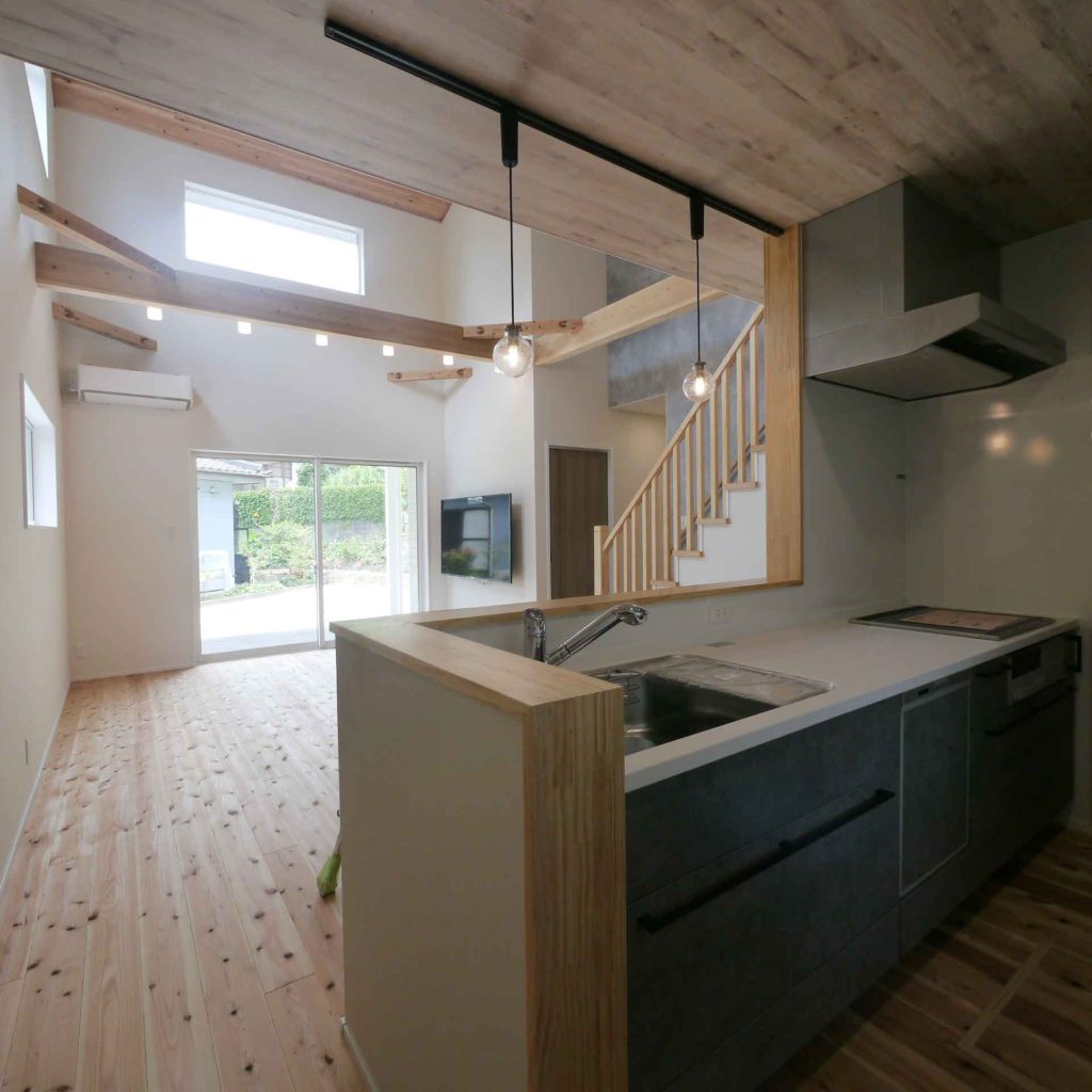 【アーチ壁とグレーのキッチンが映える無垢の家】遠賀郡O様邸