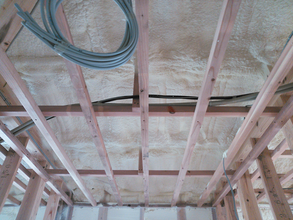 吹付けの断熱材はわずかな隙間によくいきわたり、夏は室内に熱が伝わりにくく、冬は熱が逃げにくくなります!