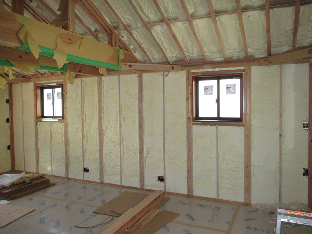 セイケンハウスでは、アイシネンという現場発泡式の吹きつけ断熱材を使用しています!
