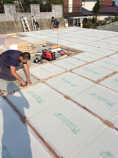 断熱材も施工中!