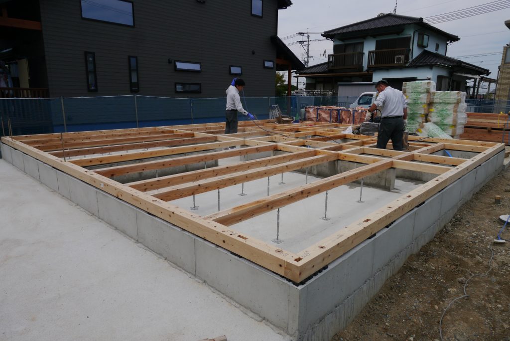 土台敷きとは基礎コンクリートの上に土台や基礎パッキンを設置していく作業です!