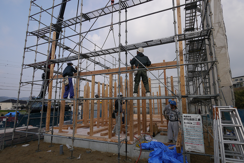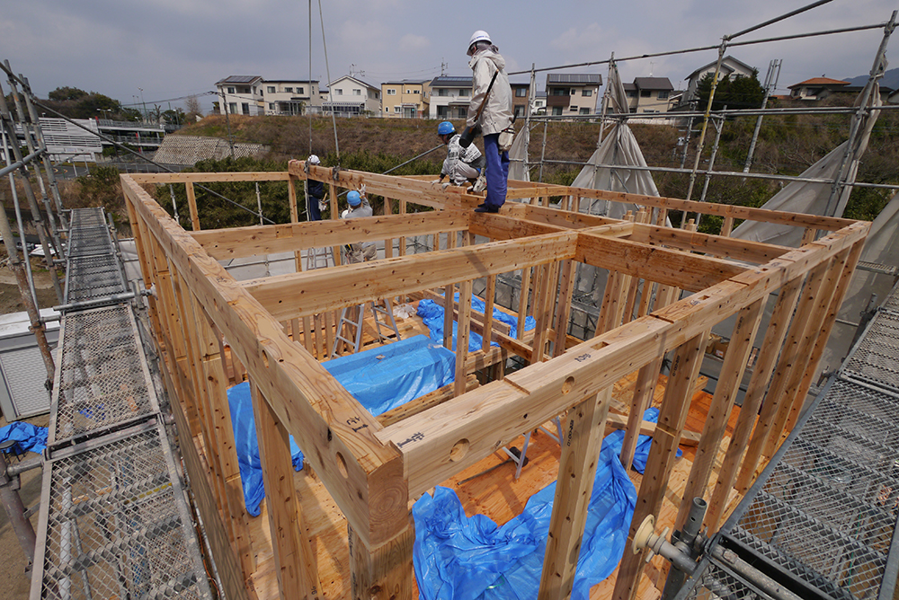 棟上とは、住宅を建築するときに基礎工事完了後、土台、柱、梁などを施工し更に棟木を上げることを言います!