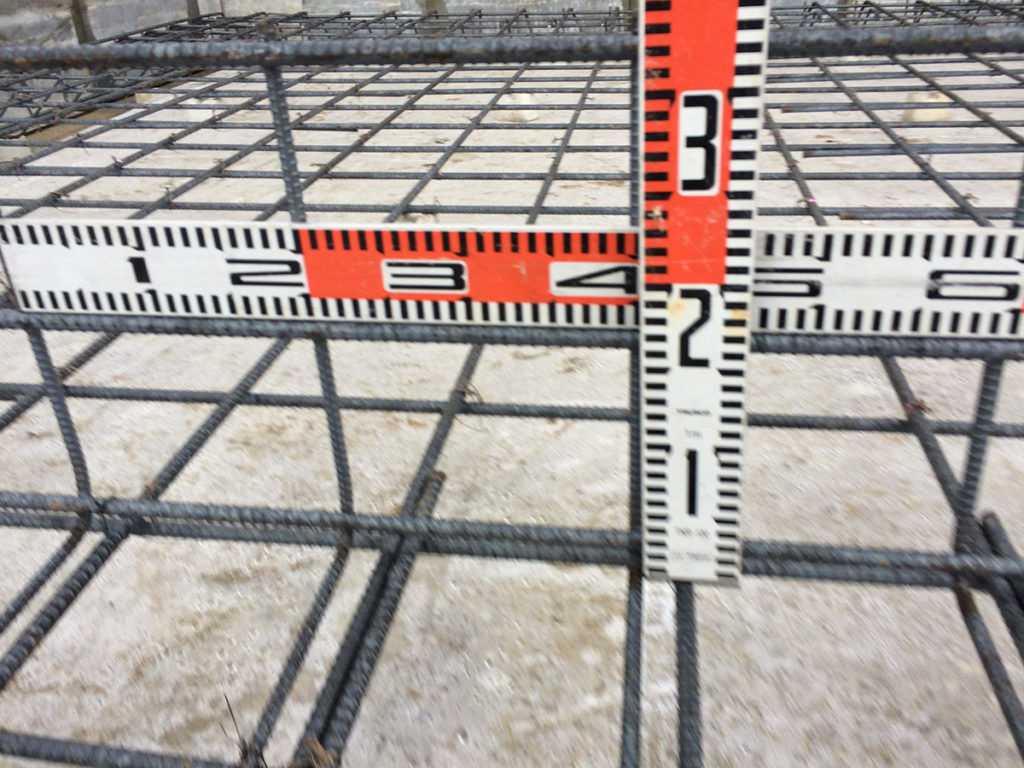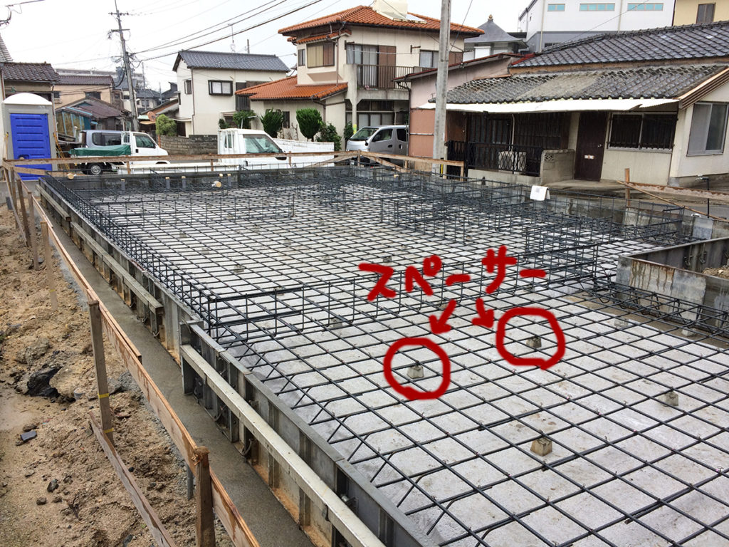スペーサーブロックを敷くことで鉄筋の下のコンクリートの厚みを十分確保し、均一に並べることで強度を保ちます!