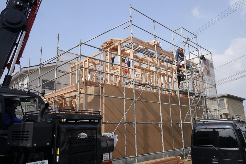 棟上げとは、木造住宅の建設工事が進み梁や柱などの骨組みを造って行くことで、