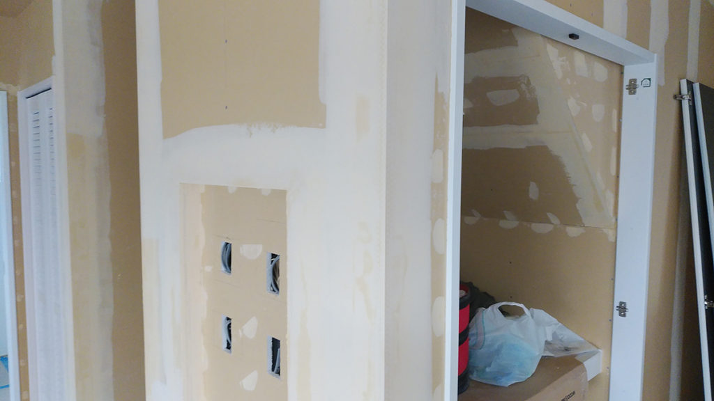 ボードを打ち付ける工事を行うといよいよ壁の土台の出来上がりです。