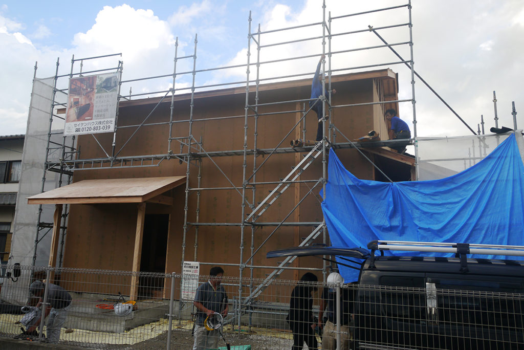 タグ: 新築一戸建て、注文住宅,福岡,宇美町 / 棟上げ / 耐力面材,ハイベストウッド, / 貴船 / 軸組 / 防水シート