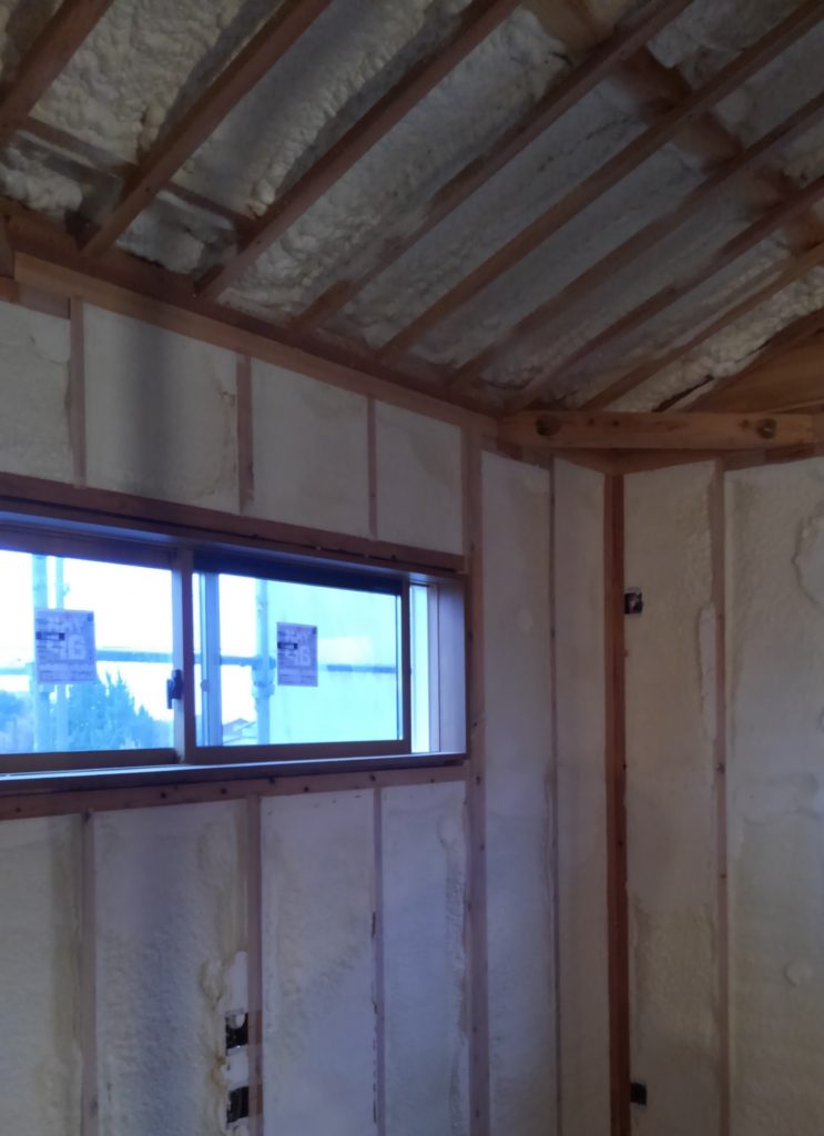 吹付断熱工事♪~糸島市S様邸~ 糸島市S様邸の幸せづくり状況です♪ 吹付断熱工事が行われました! 吹付の断熱材は、わずかな隙間にも充鎮し、夏は室内に熱が伝わりにくく、冬は熱が逃げにくくなります! 次の工程に進みます♪ タグ: アイシネン / 吹付断熱 / 施工状況 / 注文住宅 / 糸島