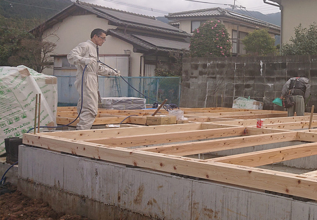 床下に断熱材を施し、床下地を貼ってこの日の作業は完了です!