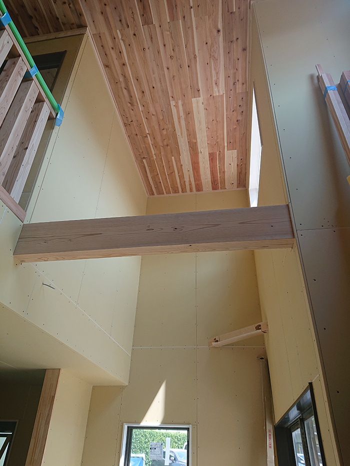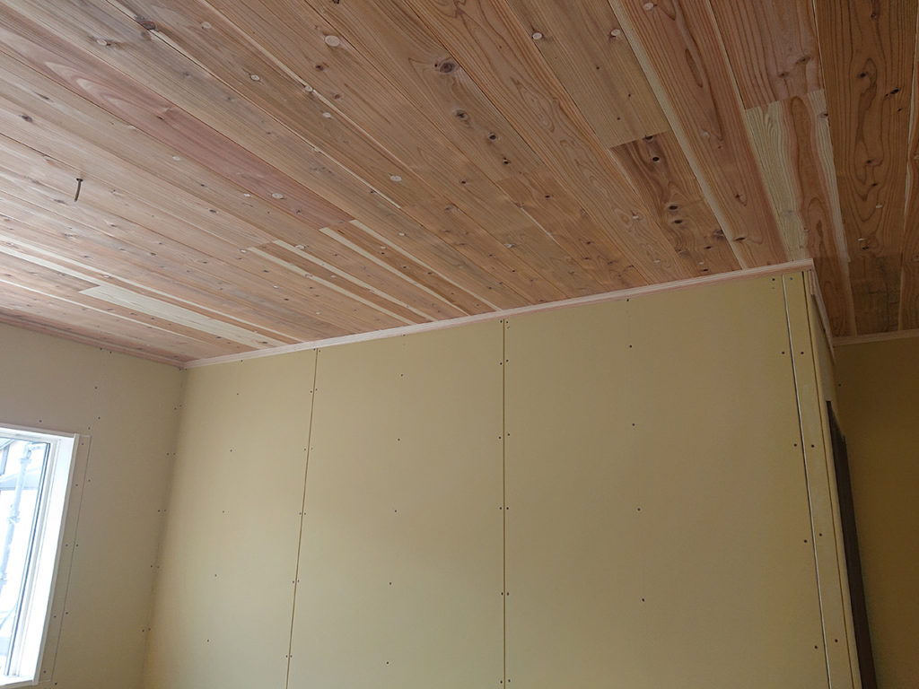 木工事②♪ ~須恵町K様邸~ 須恵町K様邸の幸せづくり状況です! 木工事中です♪ 天井杉板張り完成! プラスターボードも貼り終わりました! この上にクロスを貼ります! 次の工程に進みます~♪ タグ: ボード貼り / 施工状況 / 木工事 / 注文住宅 / 福岡 / 須恵町
