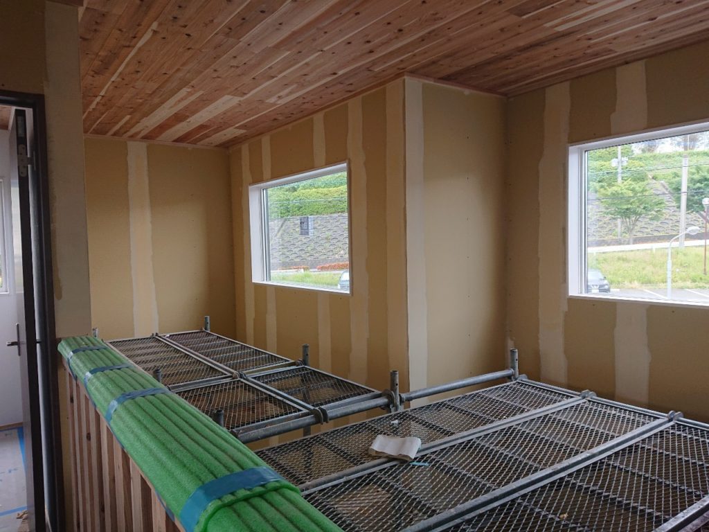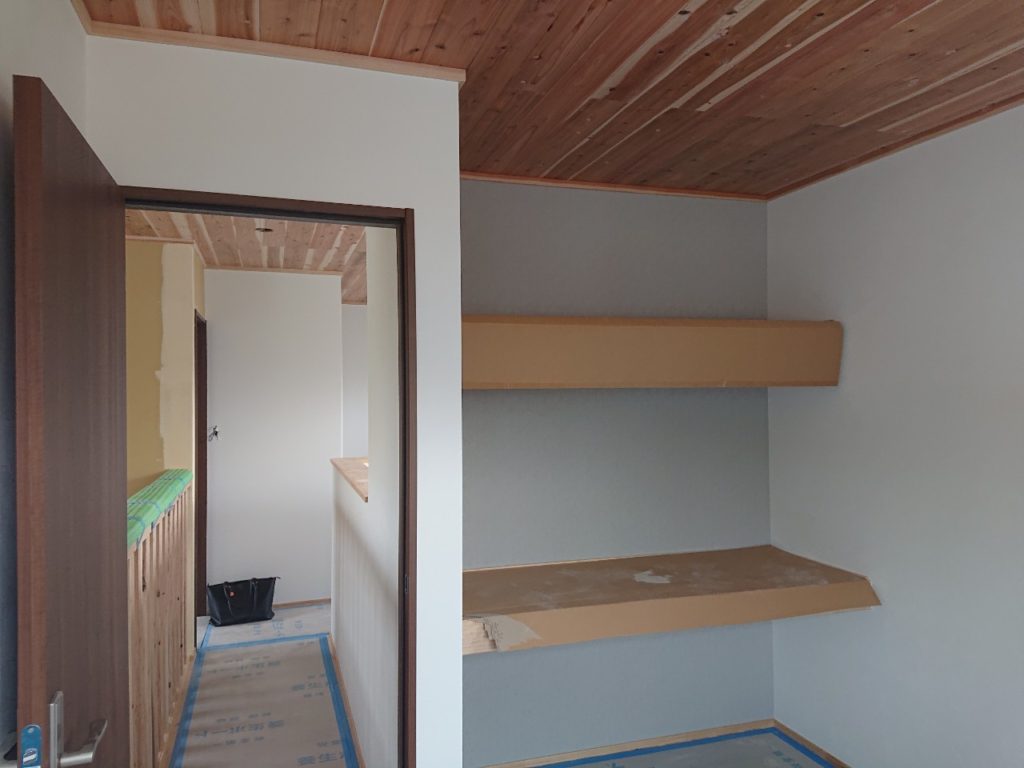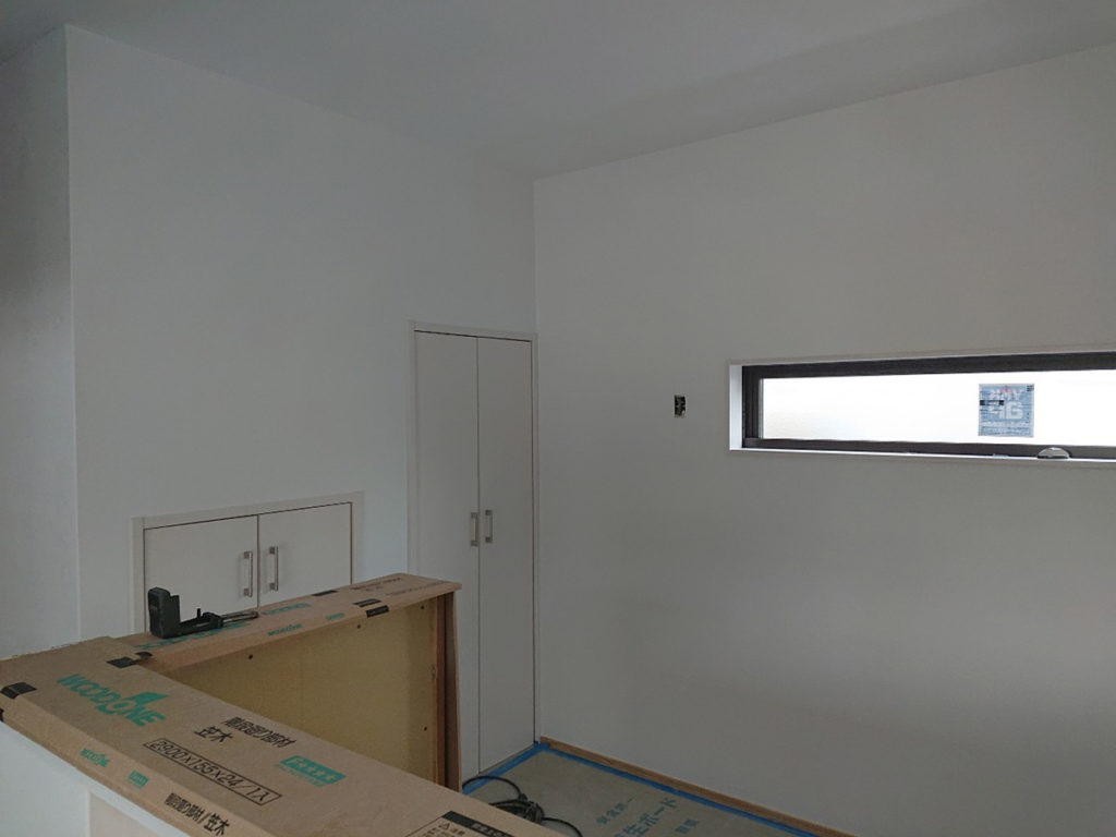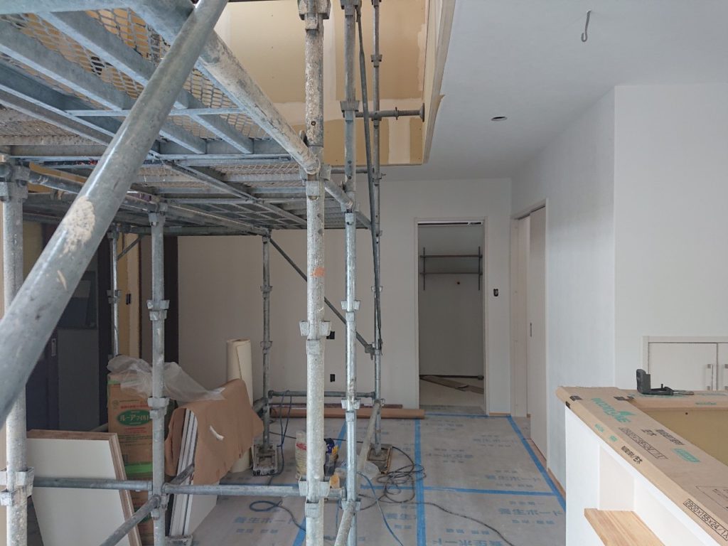 プラスターボードを打ち付け、パテで凹凸を均したら、クロス工事に入ります!