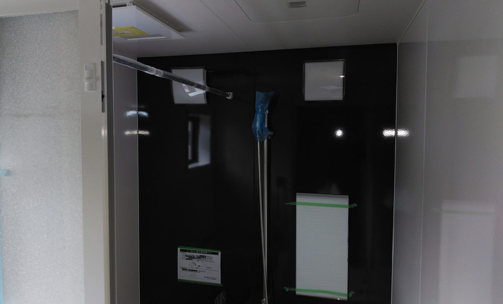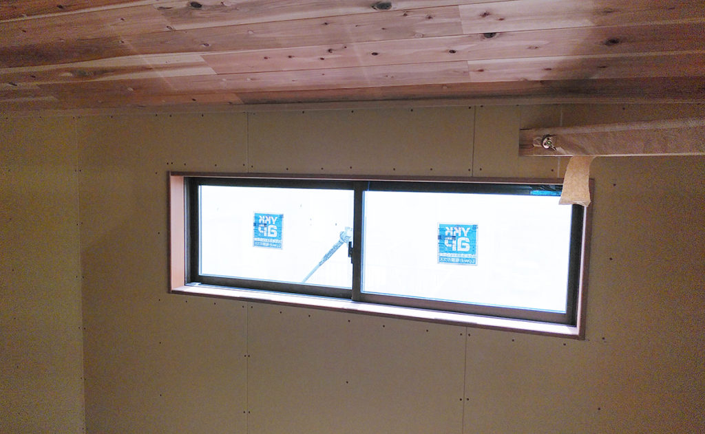 断熱材を吹付、電気配線などを行った後に、ビスを均等間隔で打っていき、プラスターボードを貼ります!