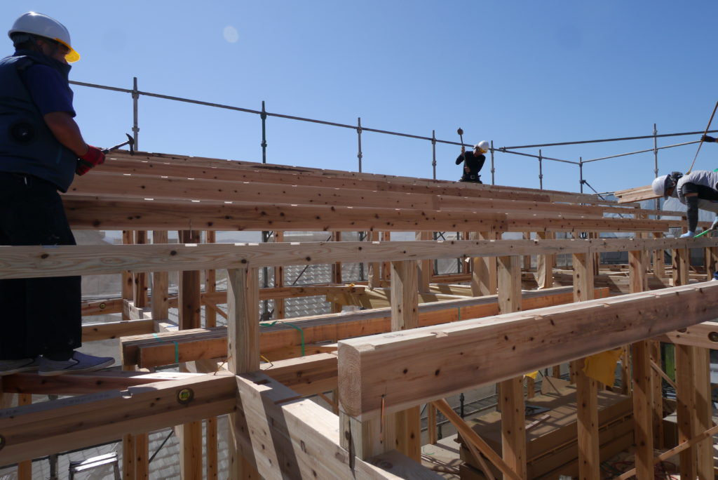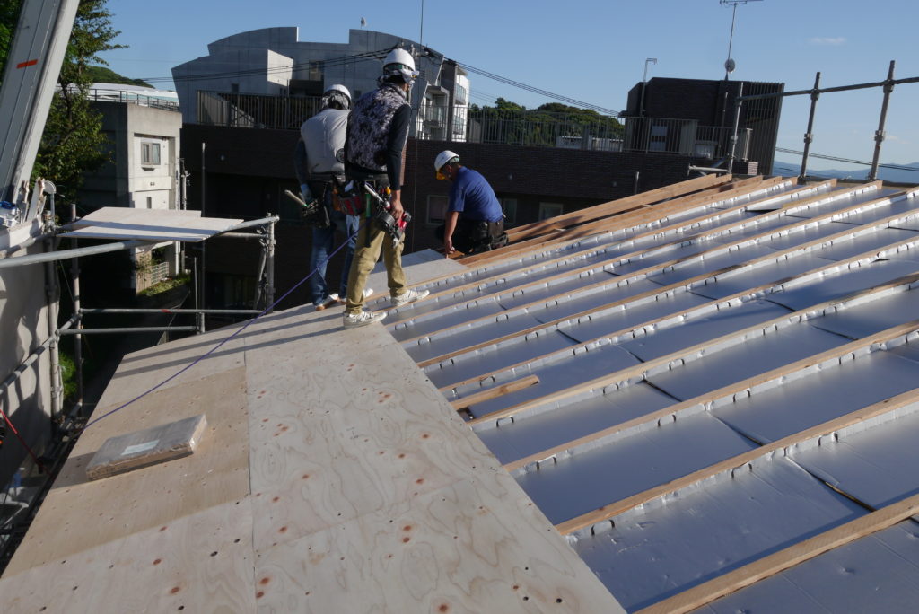 棟木が上がると屋根下地工事に進みます♪