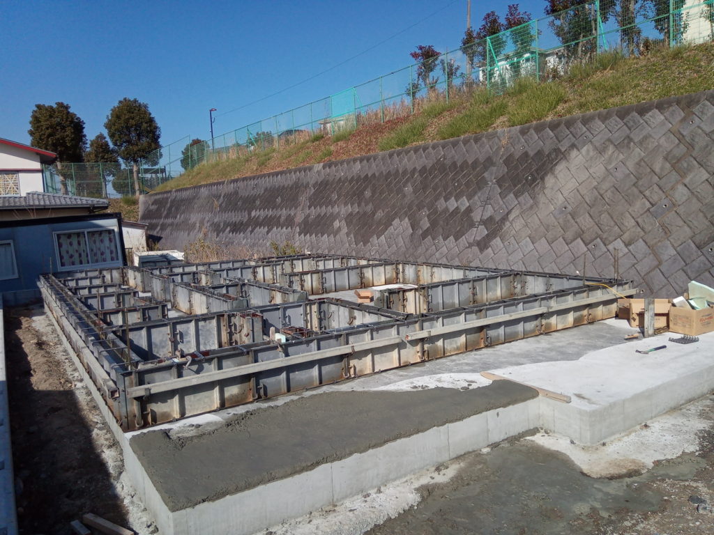 配筋検査が終わると、床下基礎のベース部分にコンクリートを打設します!