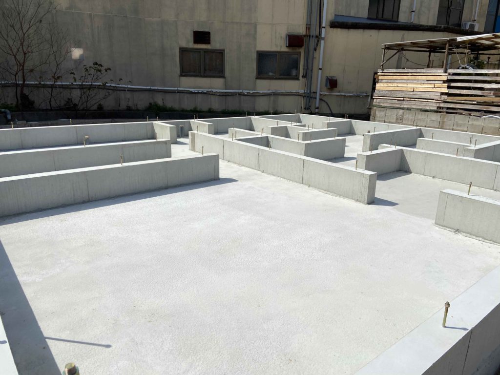 コンクリートが固まり、基礎が完成したら全体を見渡してひび割れやジャンカなどが無いか確認します!