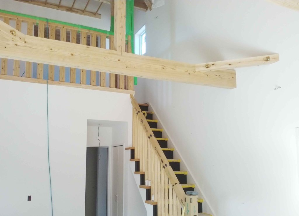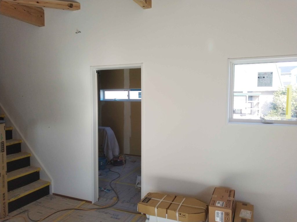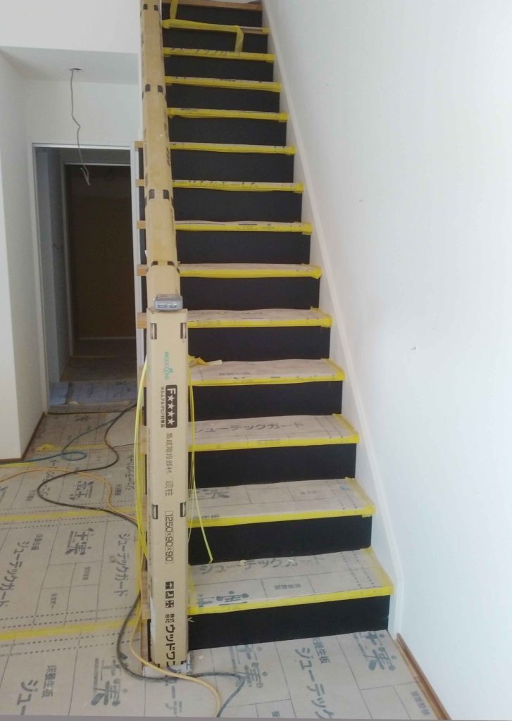 階段蹴込み板のクロスがアクセントになっています(#^^#)