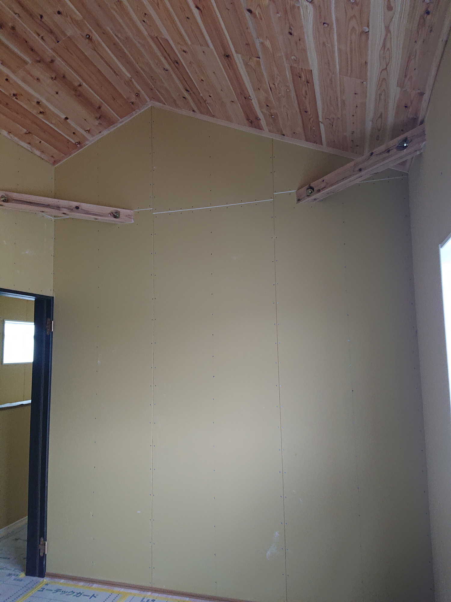 断熱工事の後、ボード張り完了してます!