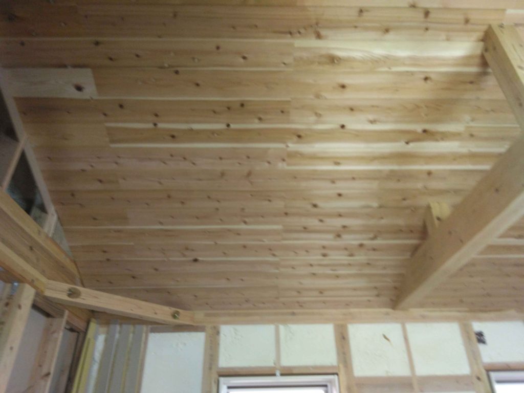 天井の杉板貼りも進んでいますね!