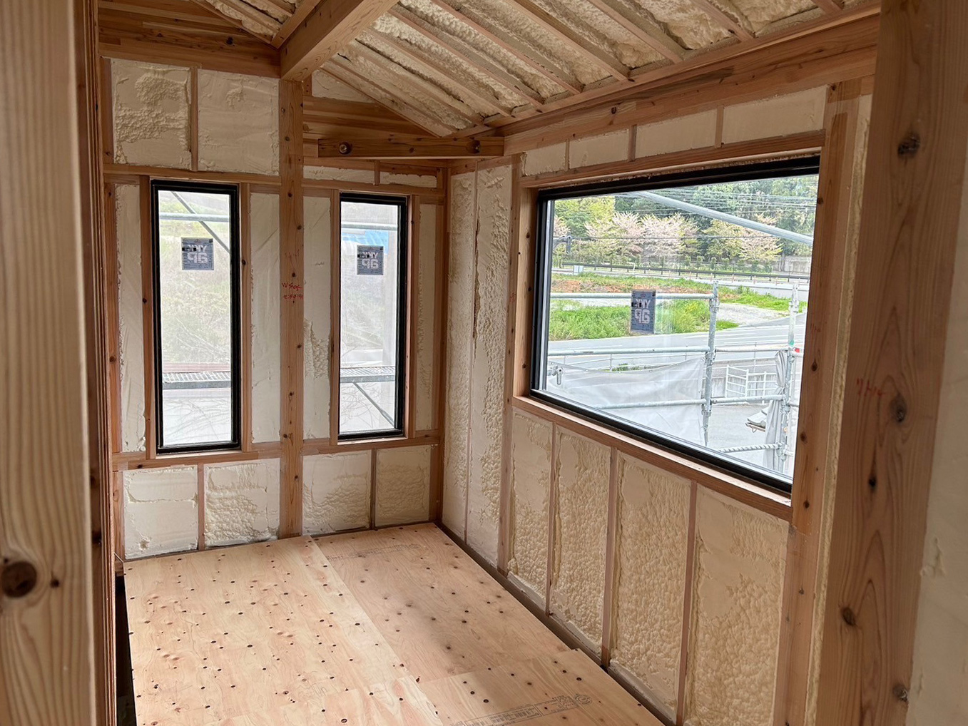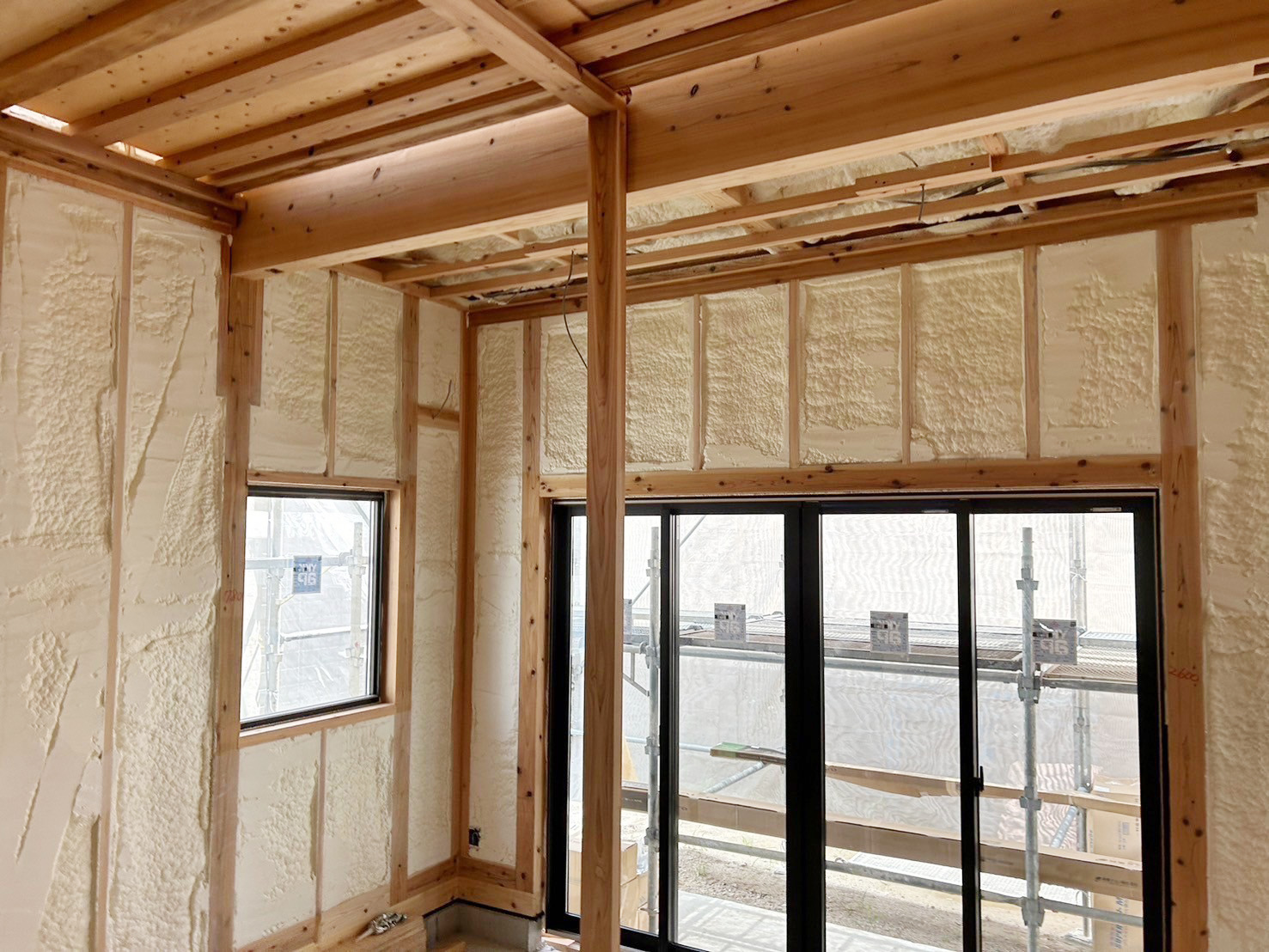 吹付断熱工事完了してます♪