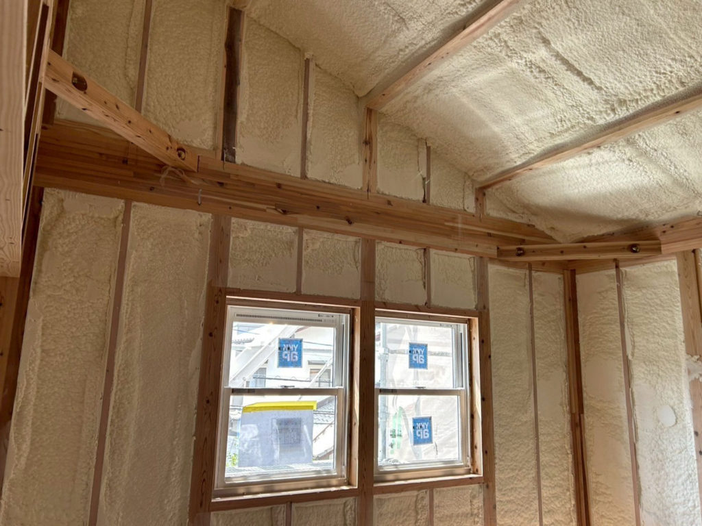 吹付断熱工事が終わってます♪