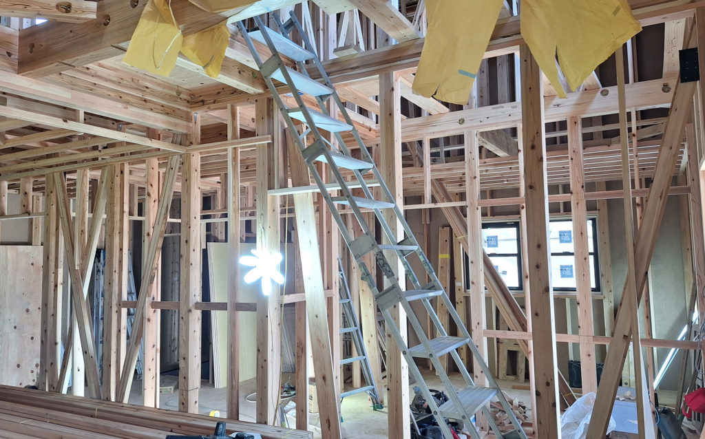 棟上げ後は、間柱、まぐさ、筋交いの施工などがあります!