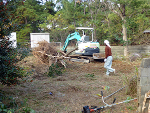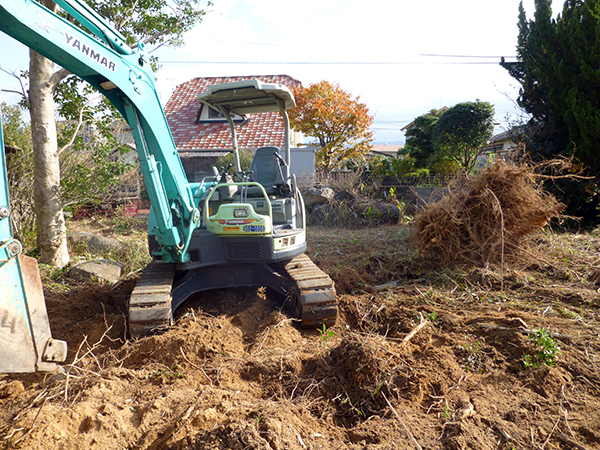 木などが埋まった状態の土地を平地にする為、除去作業を行いました♪