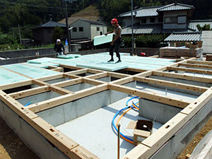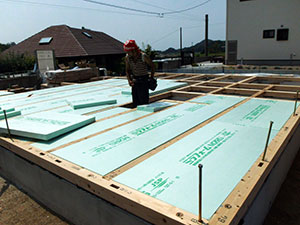 さらに、床の断熱材を入れていき、その上から木の板(実際に見える床材の下にある板)を貼っていきます。