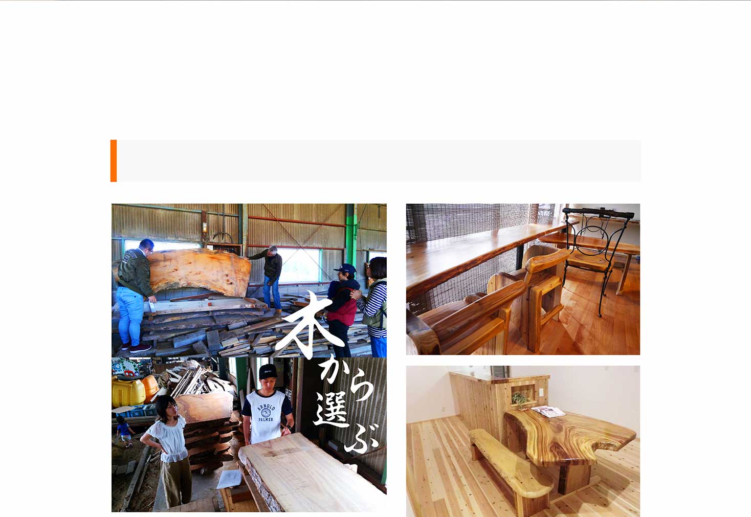 ご家族に木を選んでいただき、世界に一つだけのテーブルや椅子を製作します。