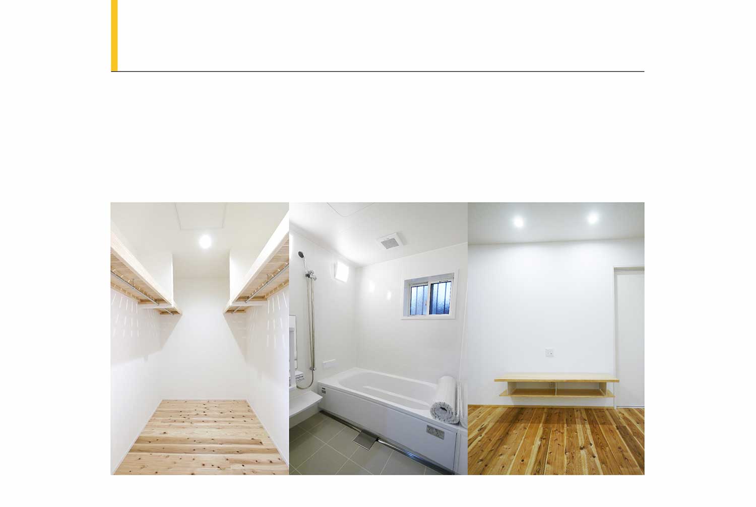ご家族に合わせて収納の数も自由に追加できます。浴室や洗面台も白でデザイン。