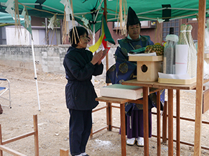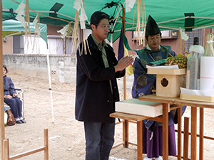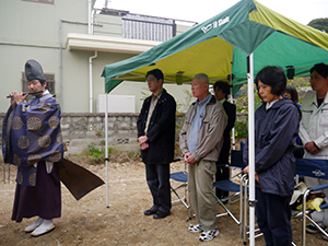 地鎮祭は、土木工事や建築などで工事を始める前に行う、その土地の神(氏神)を鎮め、