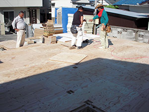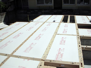 さらに、床の断熱材を入れていき、その上から木の板(実際に見える床材の下にある板)を貼っていきます。