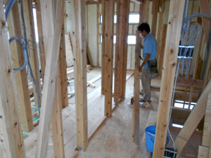 無垢の床材を木で叩き、隙間を無くしていっている段階です♪