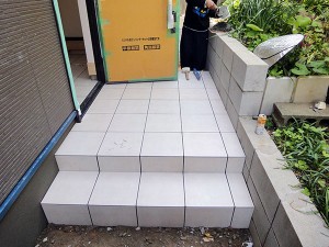 南区和田N様邸の幸せづくり状況:左官工事♪ 南区和田N様邸の左官工事の様子です♪ お家の顔となる玄関のタイル貼りを行いました♪ サイズが合うようにカットをし、はめ込んでいきます。 竣工まであもう少し!! 進行が楽しみです♡ タグ: 南区和田N様邸の幸せづくり状況:左官工事♪