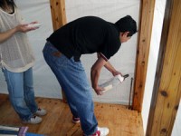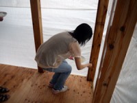 四隅の柱に酒や塩、米などをまき、天地四方の神を拝みます。