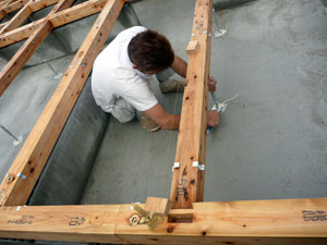基礎コンクリートが終わり、しっかりした土台が完成したあとは土台敷きという作業です。