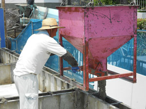 枠の中に少しづつ流し込んでいる様子です。
