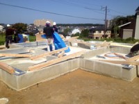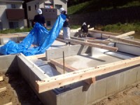 基礎コンクリートが終わり、しっかりした土台が完成したあとは土台敷きという作業です。