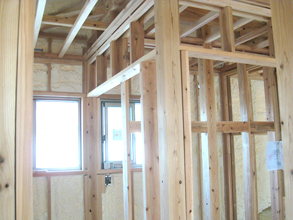 • 環境に悪影響を与えるフロンガスを使わずにホルムアルデヒドも発生させない、住む人に優しい断熱材です。