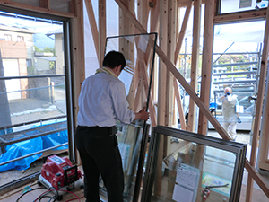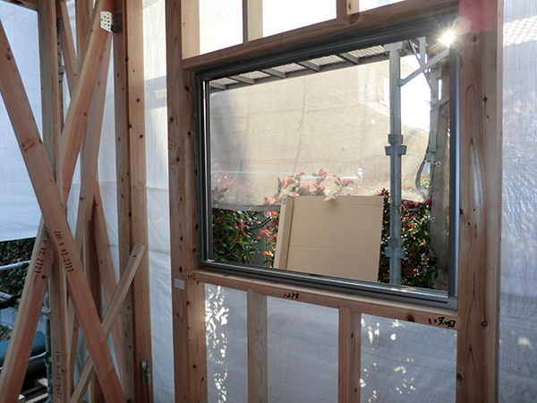 宇美町明神坂K様邸の幸せづくり状況:サッシ取り付け♪