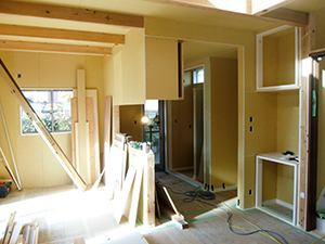ボード貼り工事も進み、K様邸もいろいろな工夫がこなされています♪