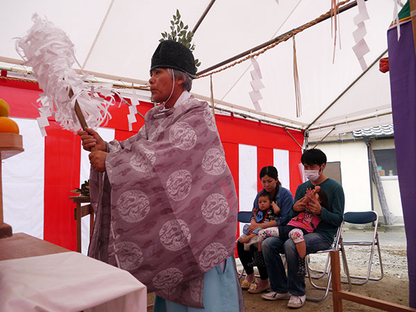 地鎮祭は、土木工事や建築などで工事を始める前に行う、その土地の神(氏神)を鎮め、