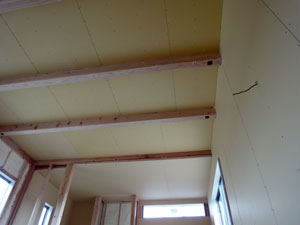プラスターボード貼りの様子です。