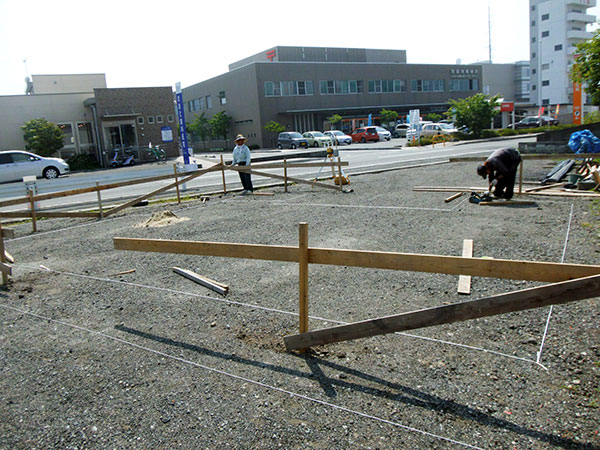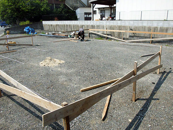 宇美町光正寺1号地M様邸の幸せづくり状況:遣り方♪ 宇美町M様邸の遣り方の様子です♪ 遣り方とは、基礎工事に着手する前に、柱と壁の中心線、内壁や外壁面の高さの基準となる水平位置などを 標示するため敷地にの仮設物を設けるのことをいいます。 タグ: 宇美町M様邸の幸せづくり状況:遣り方♪