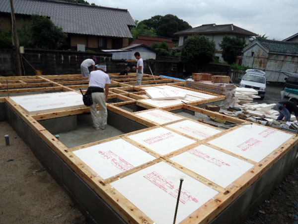 宇美町S様邸の幸せづくり状況:土台敷き完了・床下断熱工事♪