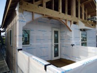 空気胴縁の役割は、白く見える防湿シートとサイディングの間に隙間を設け、