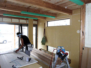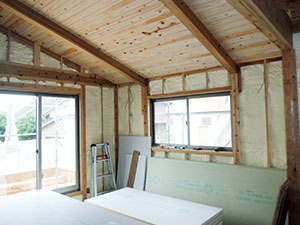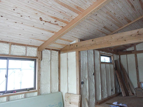 宗像市O様邸の幸せづくり状況:造作工事♪ 宗像市O様邸の造作工事です♪ 梁を活かして張られた木の天井がとっても綺麗ですね♡ クロスが貼られたらどんな感じになるのか、楽しみです♡ タグ: 宗像市O様邸の幸せづくり状況:造作工事♪