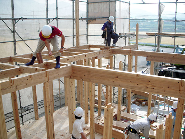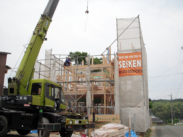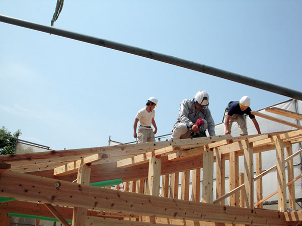 宗像市O様邸の幸せづくり状況:棟上げ♪ 宗像市O様邸の棟上げの様子です♪ 木造住宅の建設工事が進み、梁や柱などの骨組みをつくっていきます。 およそ1000本もの木を1本1本組み立て、1日で一気に組み立てます。 タグ: 宗像市O様邸の幸せづくり状況:棟上げ♪