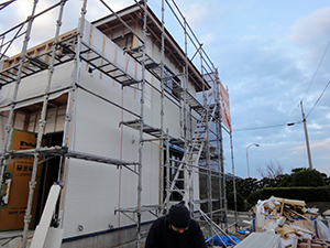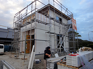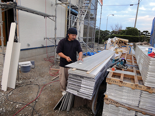 福津市渡U様邸の幸せづくり状況:外壁工事♪ 福津市渡U様邸の外壁工事の様子です♪ こちら積み重なっておいるのが、外壁材になります。 サイズに合うようにカットしながら貼っていきます♪ タグ: 福津市渡U様邸の幸せづくり状況:外壁工事♪