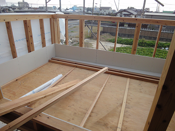 福津市渡U様邸の幸せづくり状況:サッシ取り付け♪ 福津市渡U様邸のサッシ取り付けの様子です♪ U様邸のサッシ取り付けが完了し、バルコニーの下地木工事も行いました♪ タグ: 福津市渡U様邸の幸せづくり状況:サッシ取り付け♪